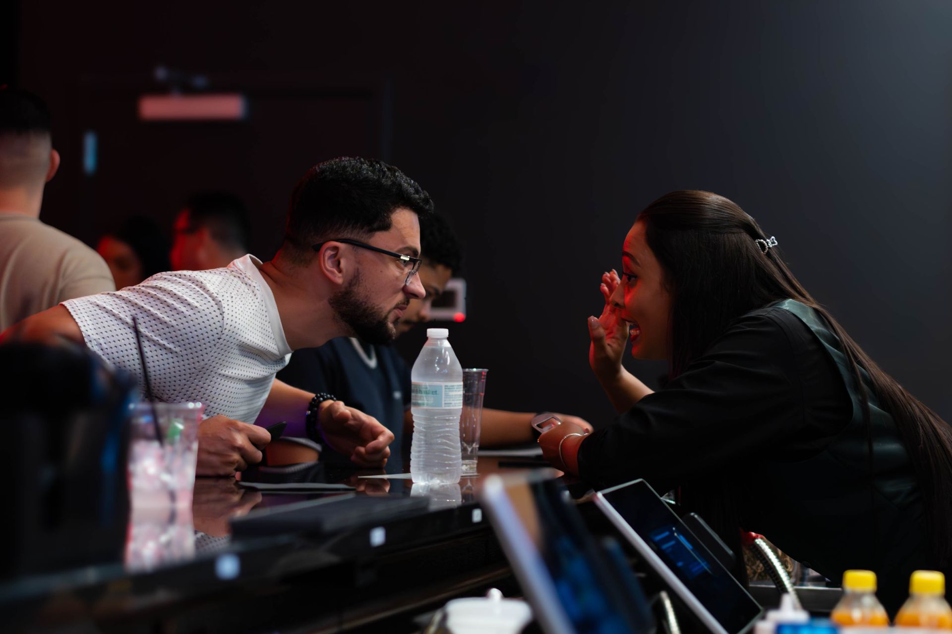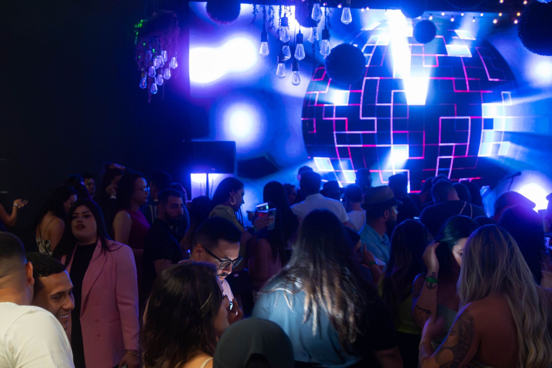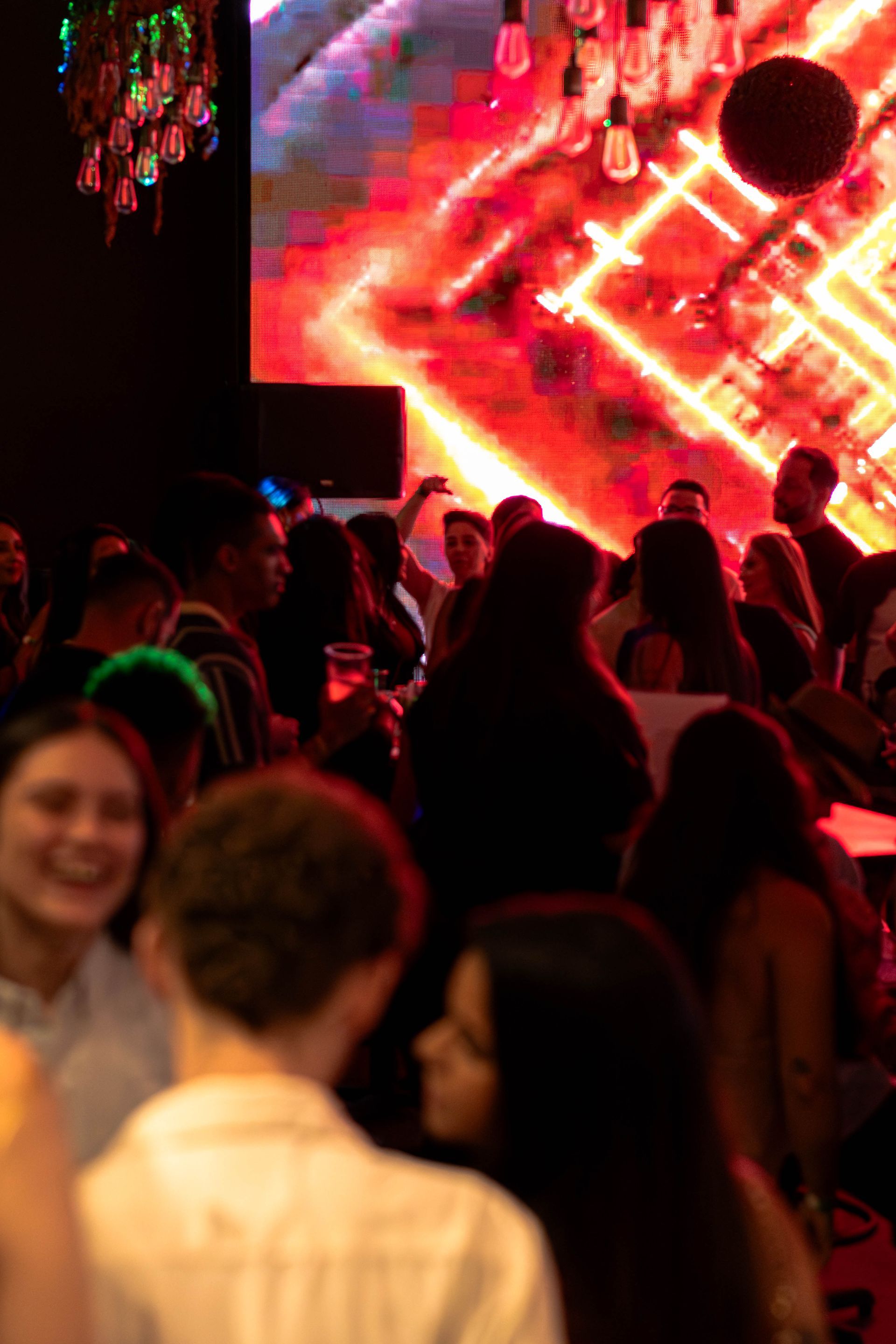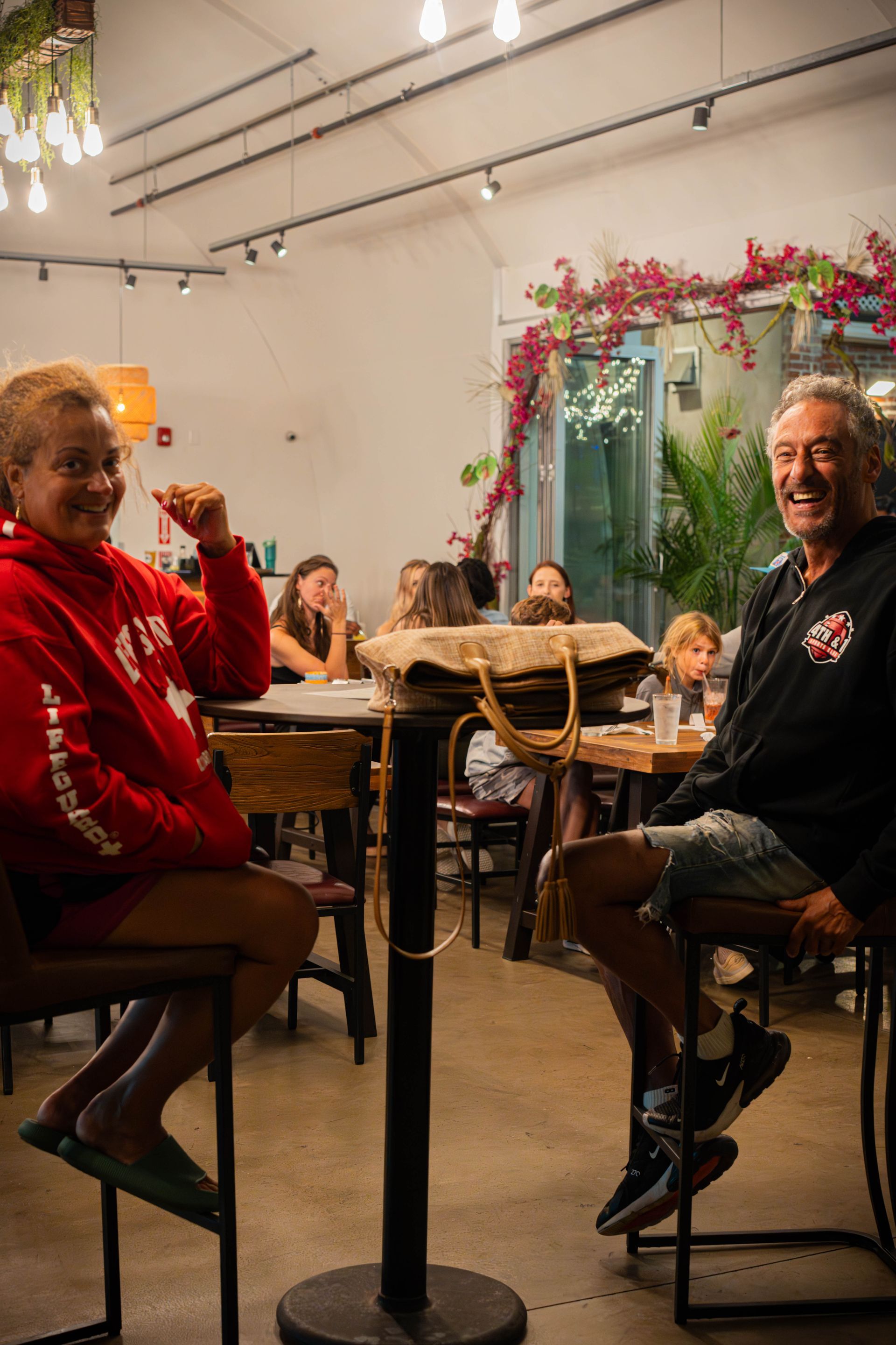 Low, cocktail lounge seating along with high top, communal tables